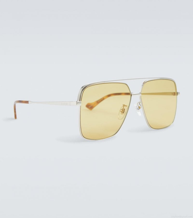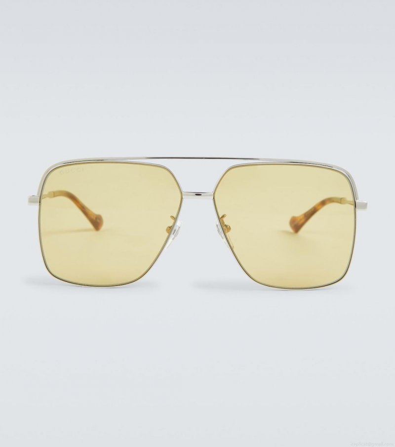 These sunglasses from Gucci feature the label's signature Navigator metal frame in a silver tone, and distinct yellow lenses.