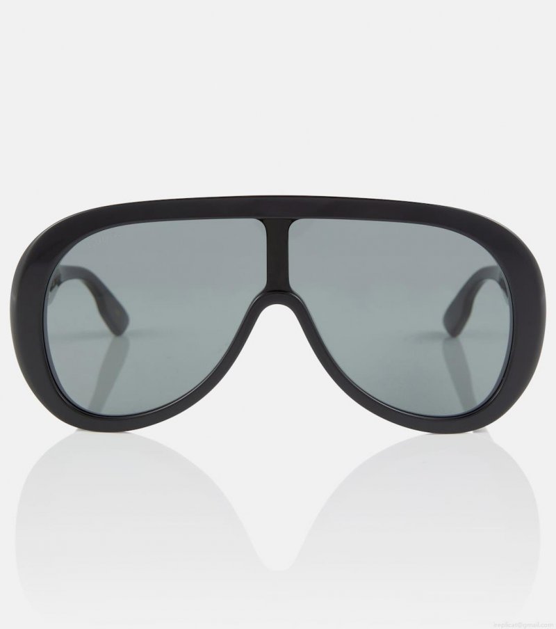 Style your outfits the Gucci way with these oversized sunglasses, which will complete any look on a fashionable note. The black acetate frames have a rounded mask-like silhouette and grey-tinted lenses.