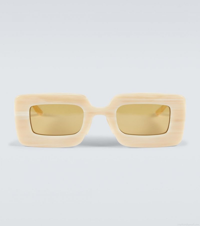 Wear these sunglasses from Gucci for a stylishly angular addition to your outfit. Made in Italy, the design comes with narrow, rectangular lenses with golden logo hardware on the sides.