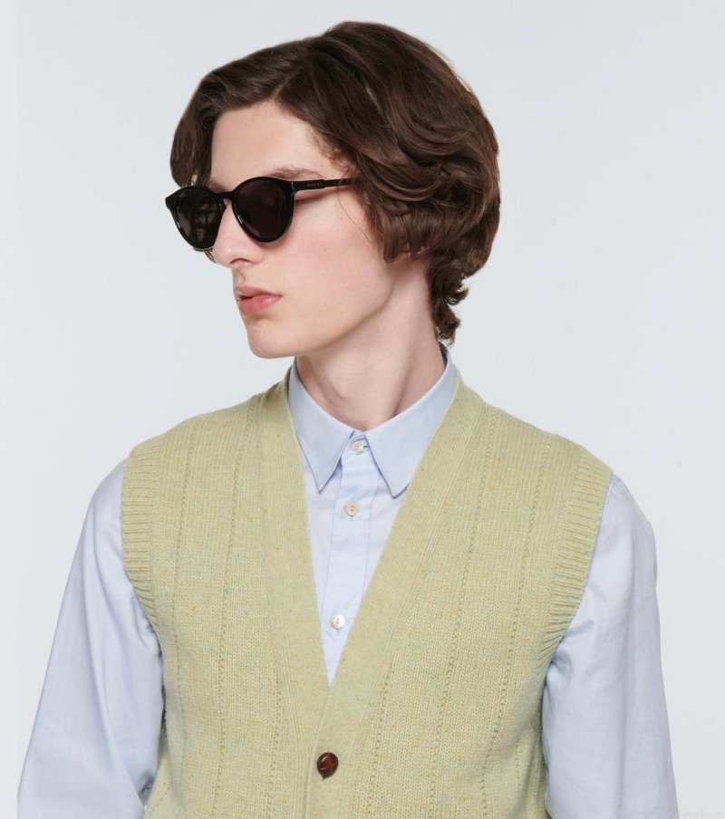 Made from acetate, these sunglasses from Gucci have dark tinted lenses and round frames. They come in a protective case, the color of which may vary.