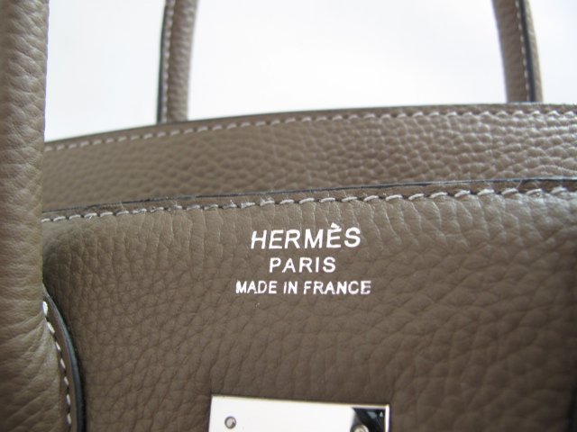 HERMES PARIS MADE IN FRANCE EMBOSSED ON FRONT OF BAG UNDER ””FLAP””
