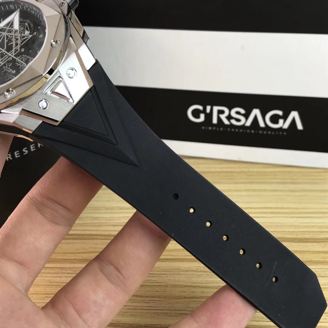 5. It features a 7750 automatic chronograph movement, titanium inner case back, satin-finished skeletonized hands, anti-reflective treated multi-faceted sapphire crystal that is scratch-resistant, and an imported fluororubber strap for enhanced comfort when wearing!