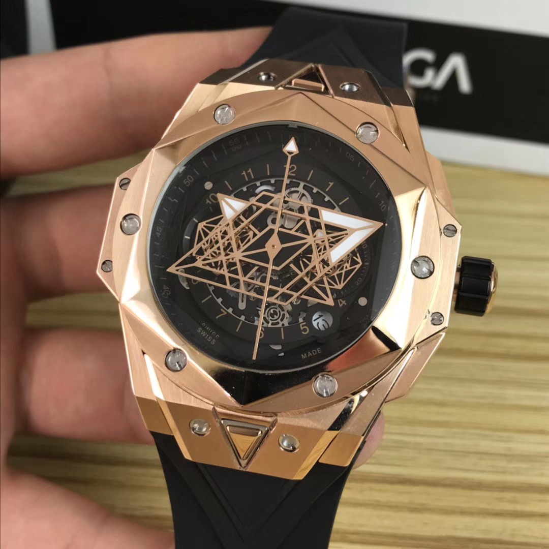 2. The most eye-catching feature of the dial is the diamond-shaped hour and minute hands, along with two hexagonal sub-dial hands, creating a unique geometric visual effect when the time changes.