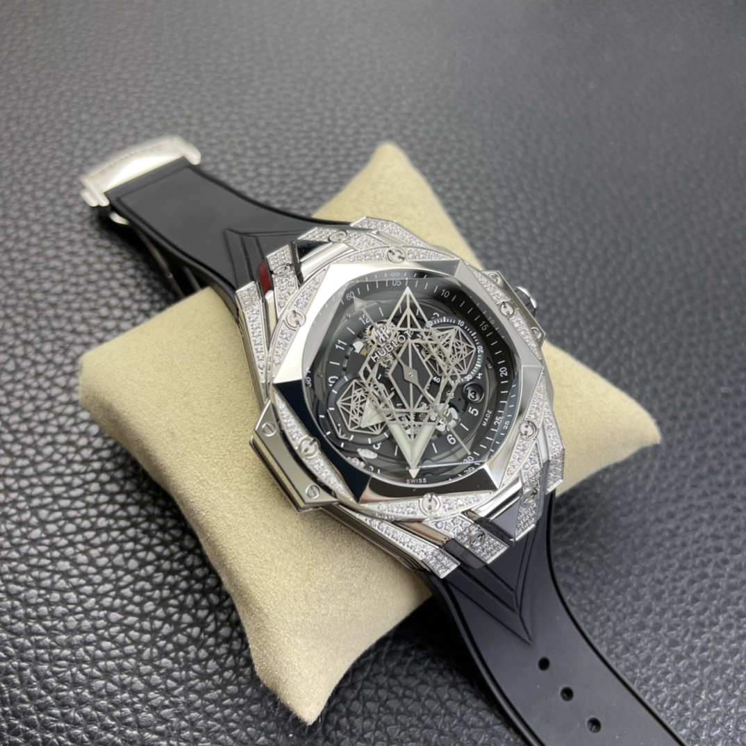 2. The most eye-catching feature of the dial is the diamond-shaped hour and minute hands, along with two hexagonal sub-dial hands, creating a unique geometric visual effect when the time changes.