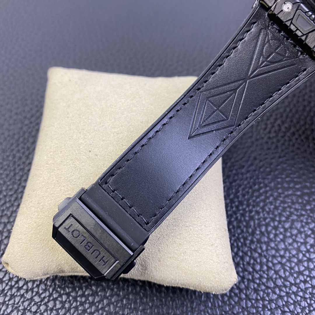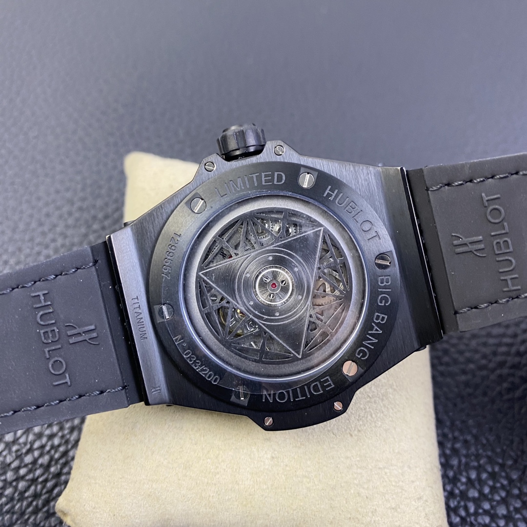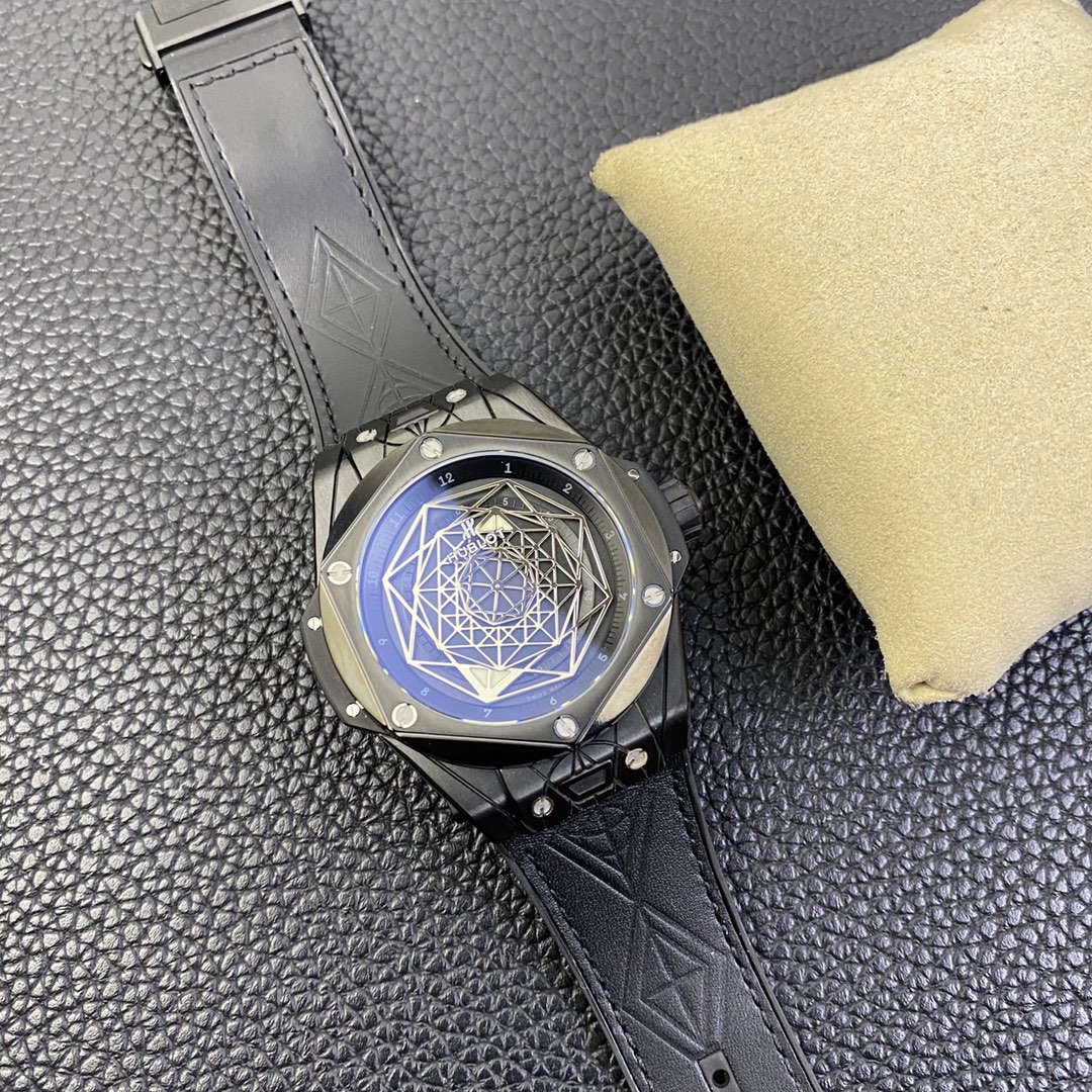 1. 45mm case diameter with graphic elements integrated into the hexagonal bezel through cutting and carving. The bezel is secured by 6 H-shaped titanium screws. The lugs of the watch have a strong design sense with steep angles and bold lines.