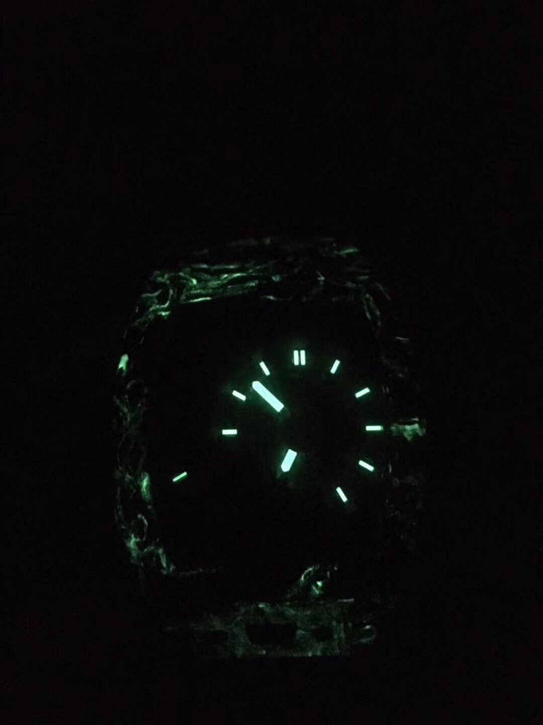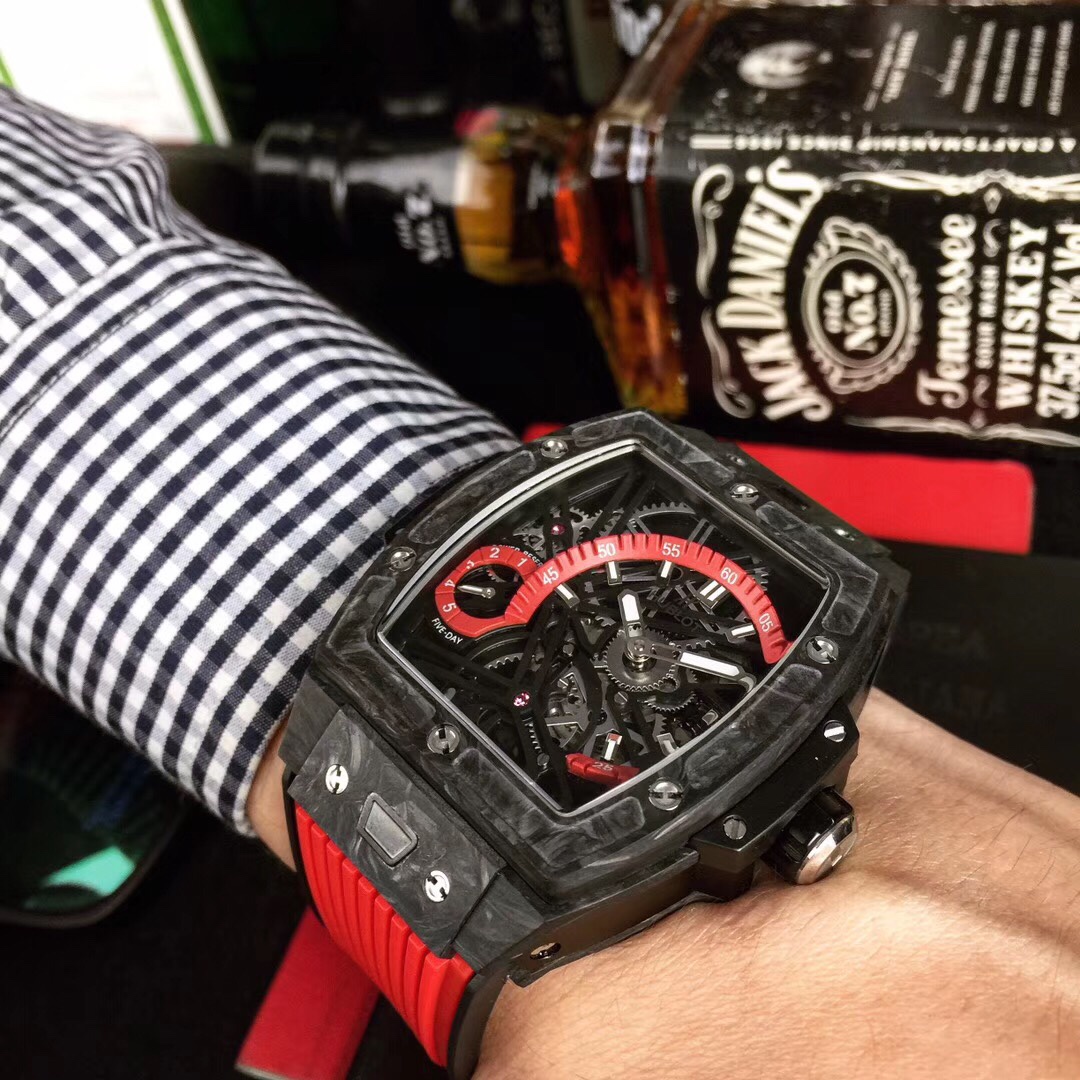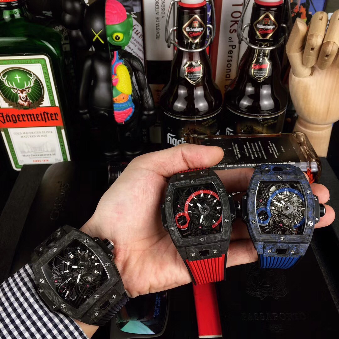 The iconic barrel-shaped case of the BIG BANG Soul Series is made of carbon fiber material, perfectly blending with the characteristics of luminescent particles. It presents a cosmic scene in the dark night, showcasing a fusion of beauty. With a diameter of 42 millimeters, it is equipped with an imported mechanical movement. The frequency is 28,800 vibrations per hour, and it comes with a rubber strap and an original buckle.