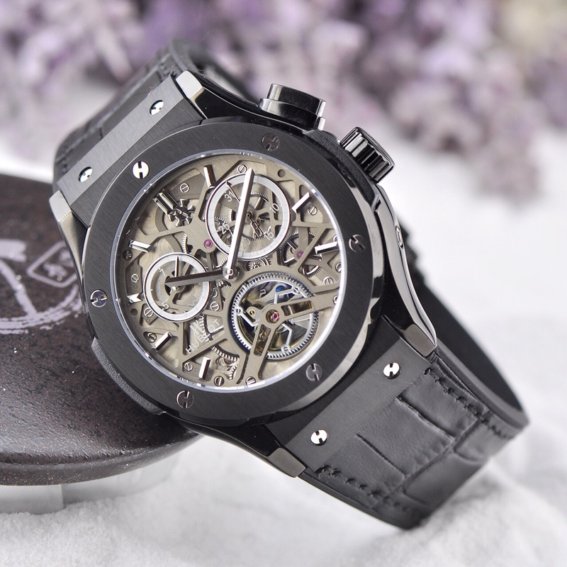 With a diameter of 45mm, this watch showcases the micro-mechanical marvels inside. The skeletonized design creates another magnificent landscape in the art of watchmaking, allowing the wearer to appreciate the inner workings of the timepiece. Hublot adheres to the concept of “the art of fusion” and has conceived an unprecedented concept of skeletonized watches, endowing it with a unique modern structural beauty. This timepiece also features a day and date function, adding practicality to its design.