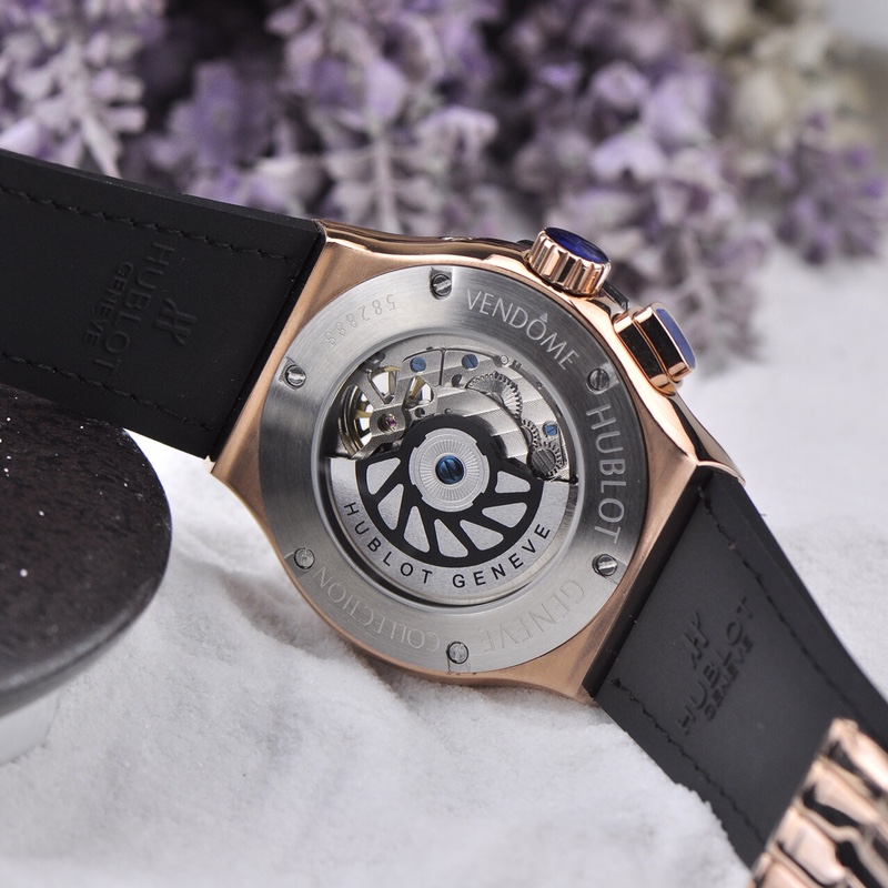 With a diameter of 45mm, this watch showcases the micro-mechanical marvels inside. The skeletonized design creates another magnificent landscape in the art of watchmaking, allowing the wearer to appreciate the inner workings of the timepiece. Hublot adheres to the concept of “the art of fusion” and has conceived an unprecedented concept of skeletonized watches, endowing it with a unique modern structural beauty. This timepiece also features a day and date function, adding practicality to its design.