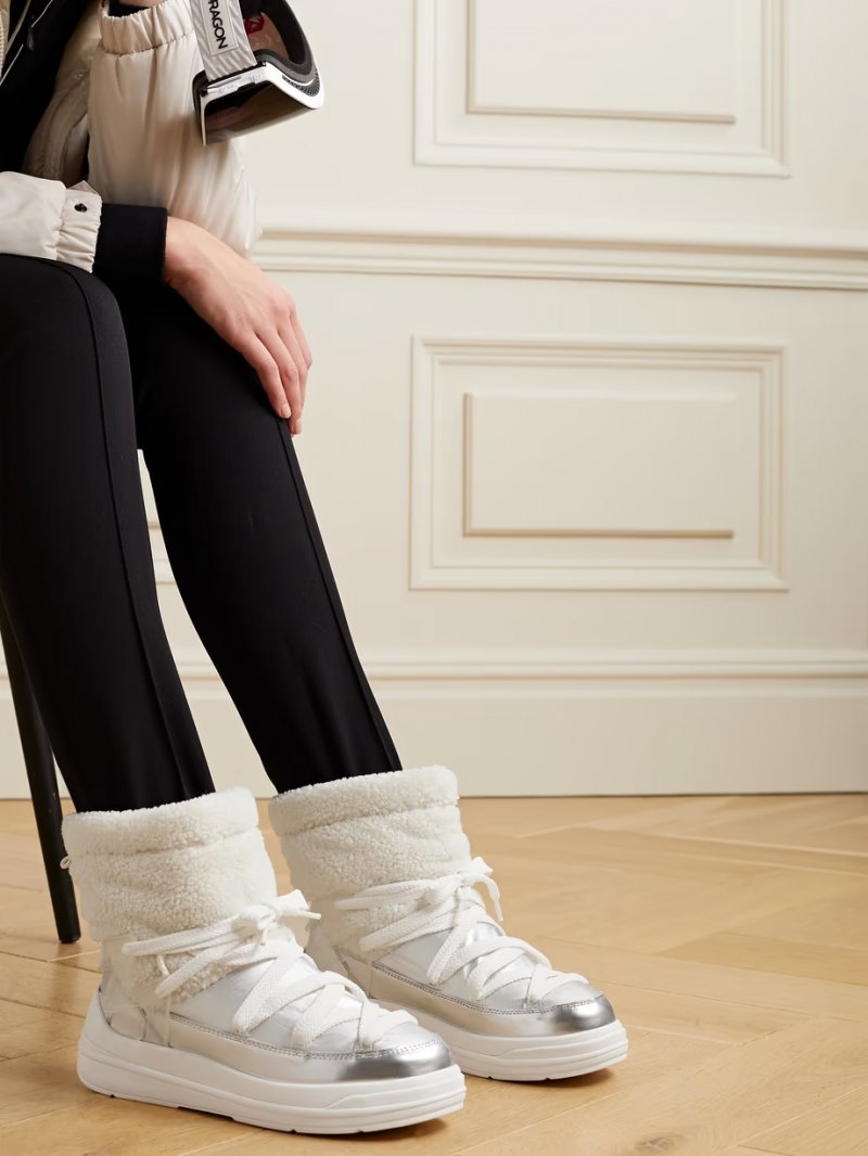 - Silver shell and leather, ivory fleece, clear rubber