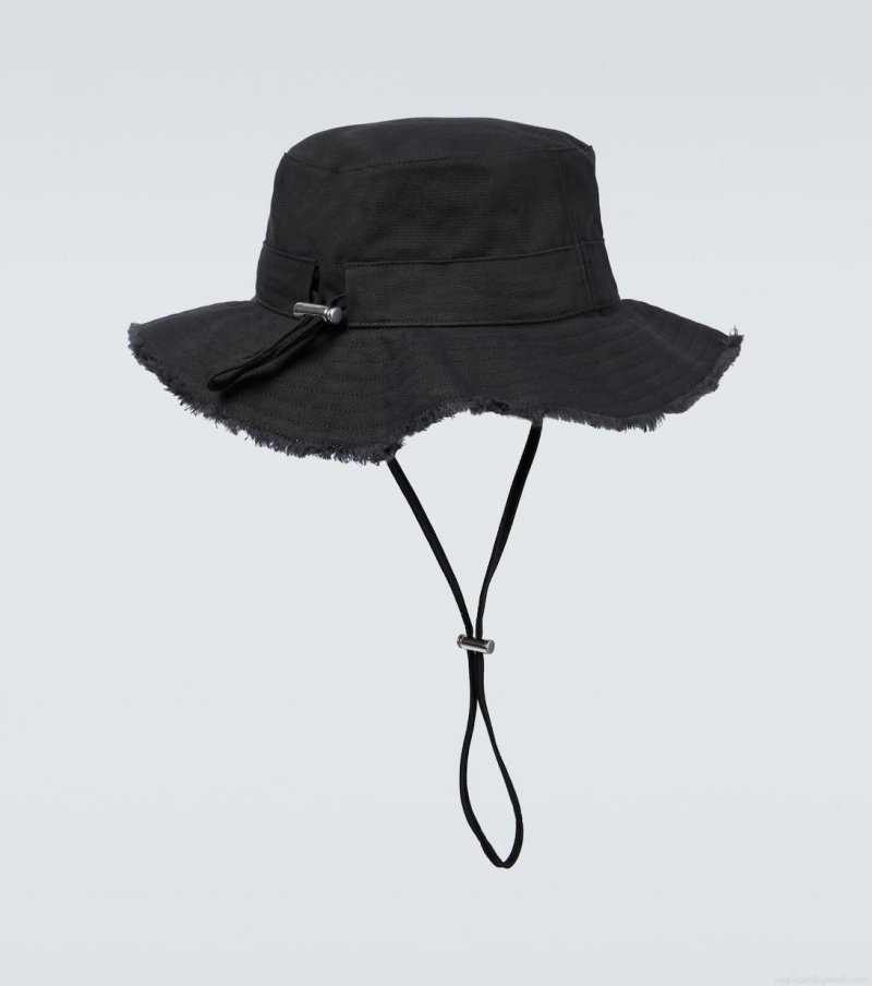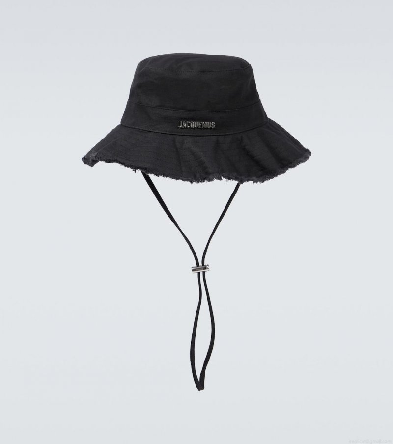 No getaway edit is complete without Jacquemus' Le Bob Artichaut hat. Made from cotton with frayed edges, it has a metal logo plaque and a drawstring fastening.