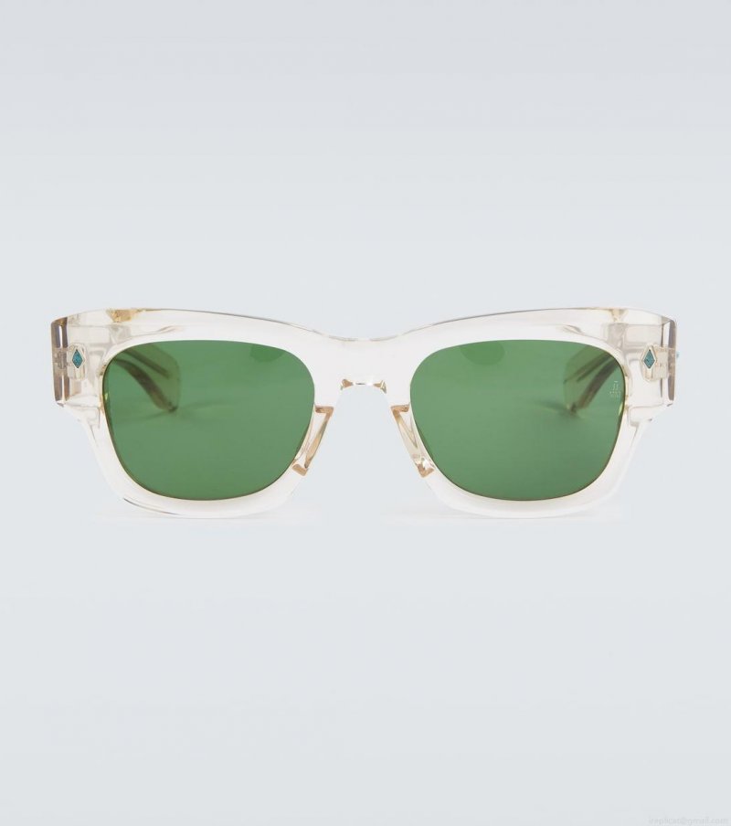 Jacques Marie Mage’s exclusive collaboration with Alanui celebrates culture and craftsmanship. The Zuma square-shaped sunglasses boast transparent frames accented with Western-inspired hardware at the temples.