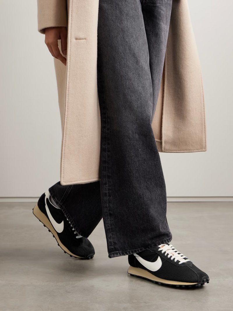 - Black mesh and suede, white and black leather