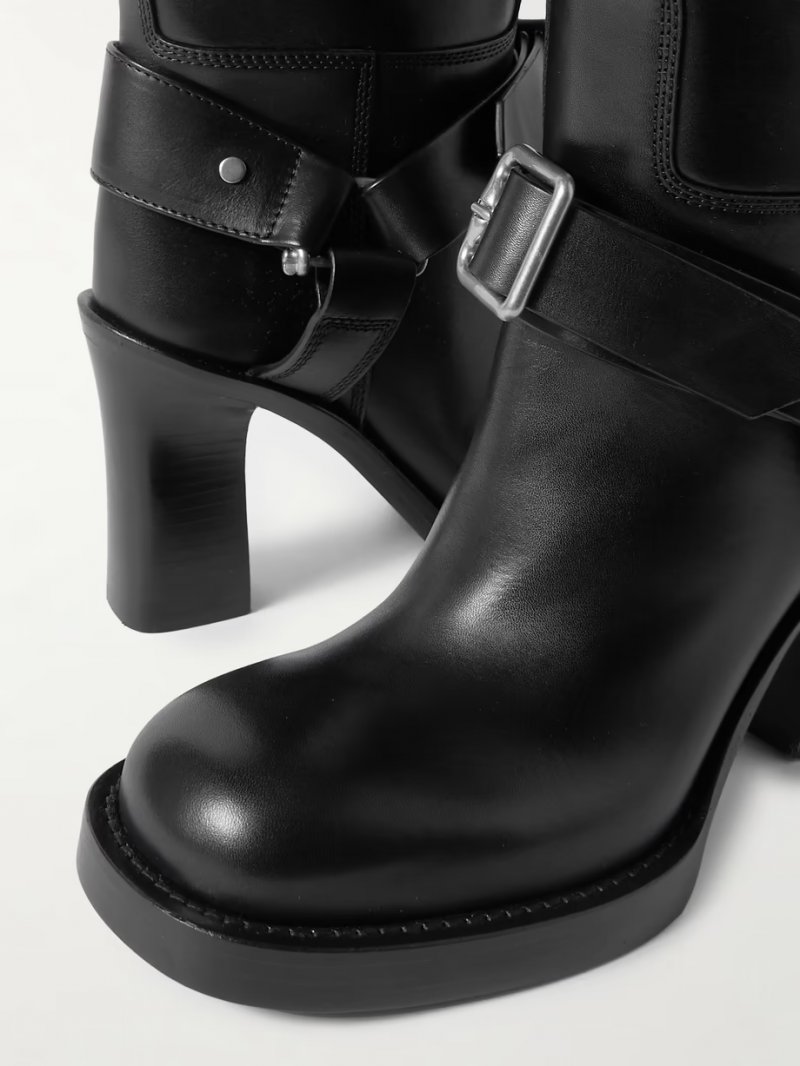 - Textured-leather ankle boots