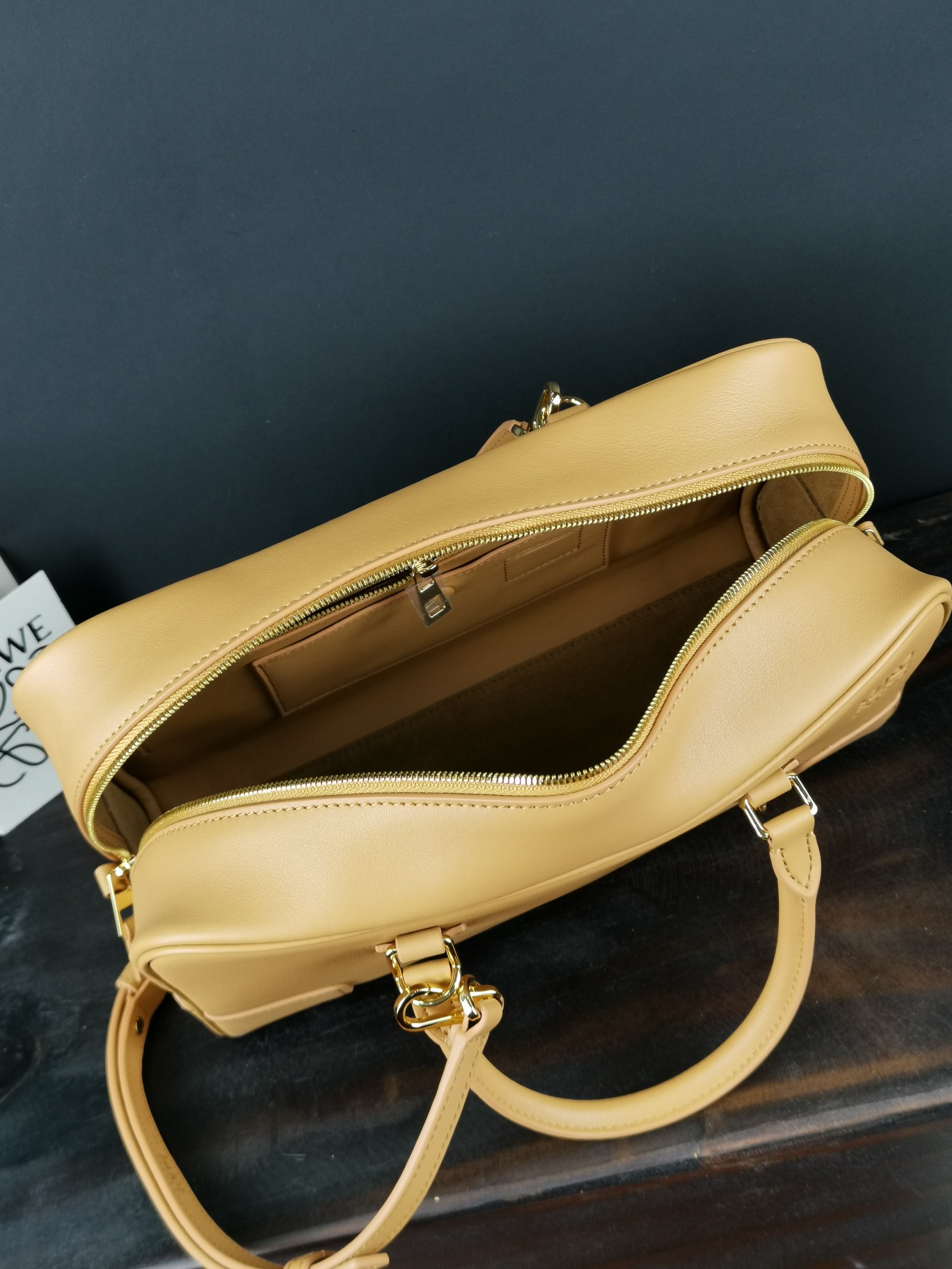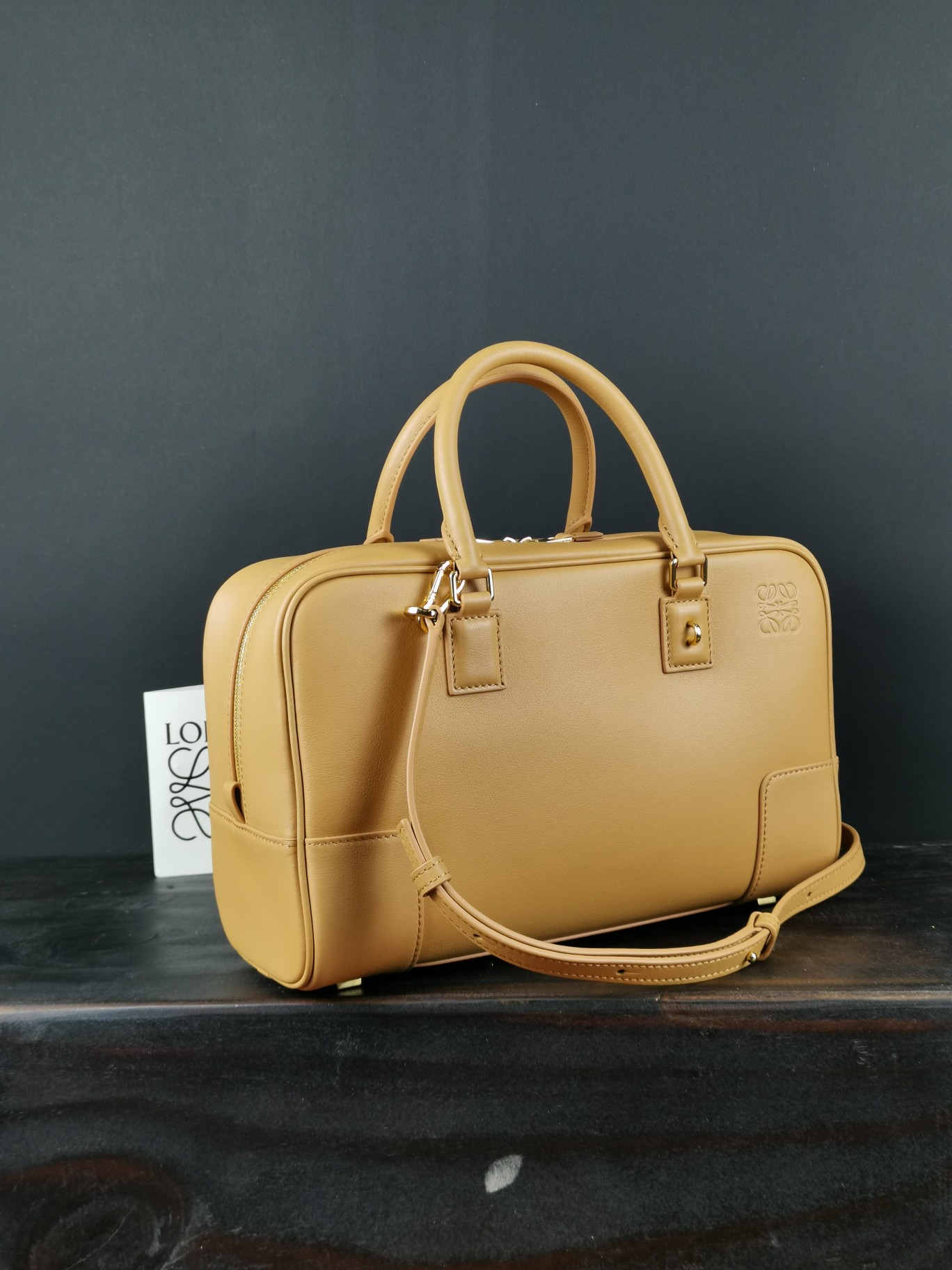 The Amazona is a signature handbag from LOEWE, originally introduced in the 1970s as a top-handle soft-structured bag. It has now been updated with refined proportions and details, including an engraved Anagram padlock.