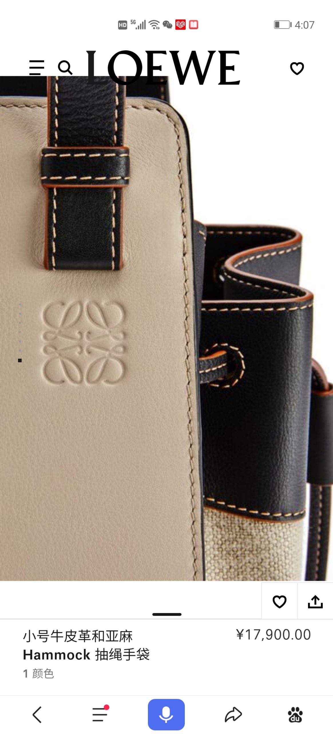 - LOEWE HANDBAG HAMMOCK DW BAG Khaki