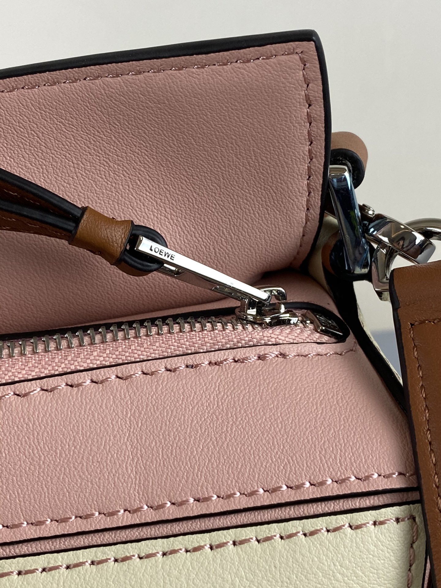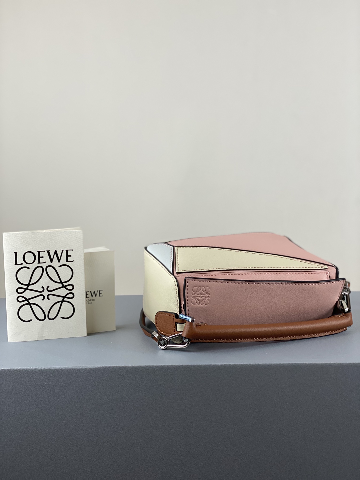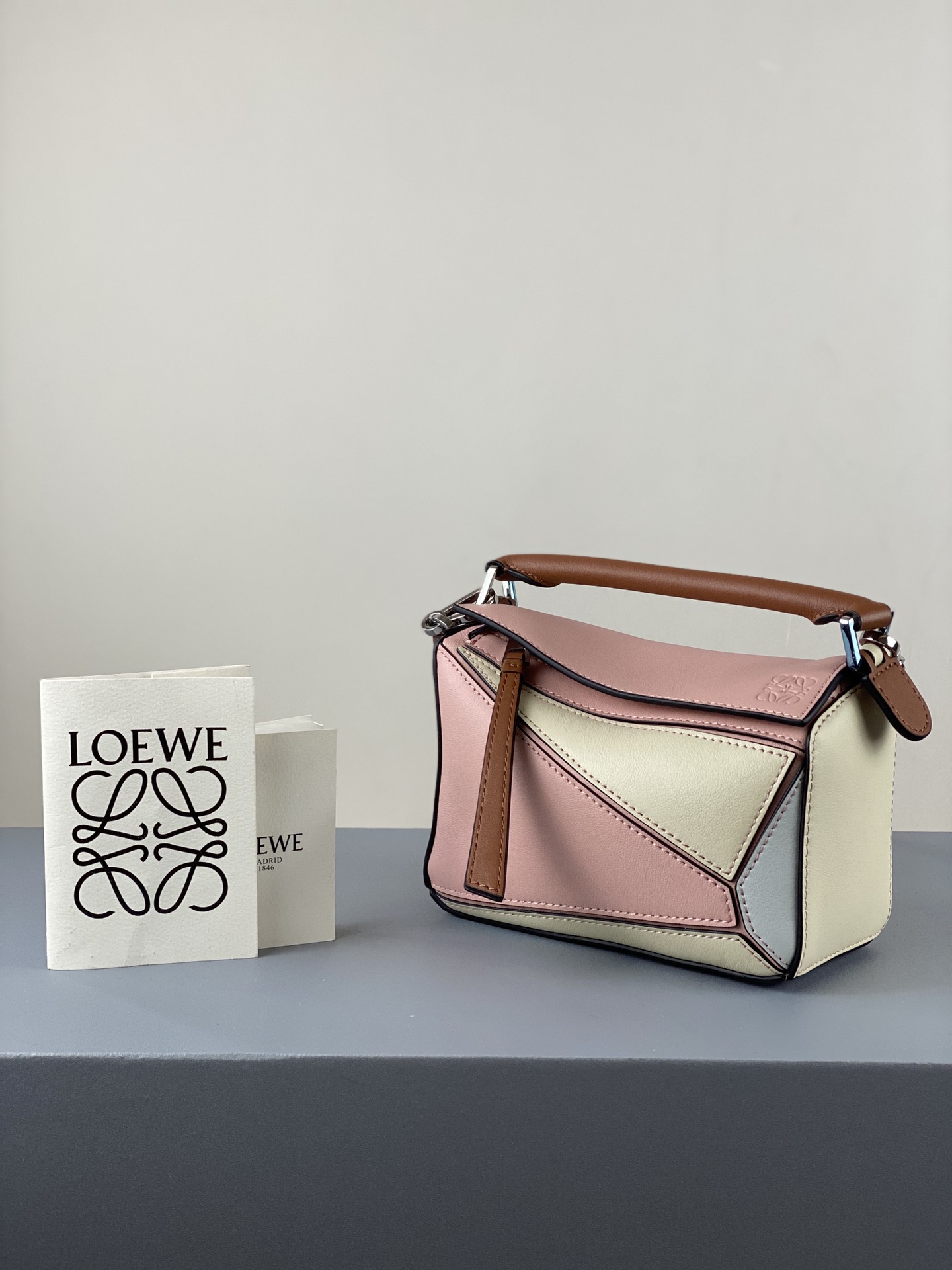 PUZZLE New Color Arrival. With a minimalist and stylish geometric design, this handbag is made of customized calf leather with a cotton and linen lining. The mini size offers a compact body with generous capacity for carrying lipsticks and compact powders effortlessly. No pressure, it comes with packaging.