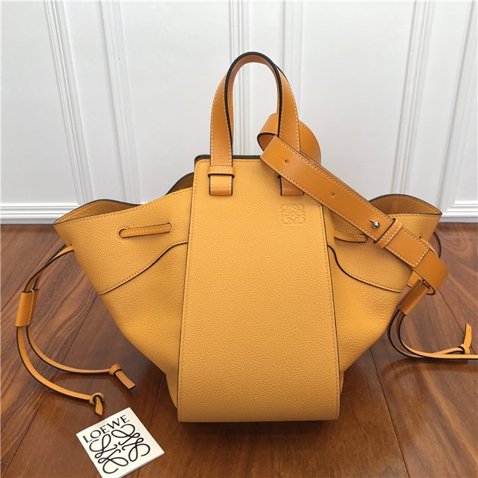 New twist on the iconic Hammock bag. Relaxed and feminine, its softer sides and drawstring closures replace the two zips. Key features: crafted from Soft Grained Calfskin, Black hand-painted edges, herringbone-patterned Cotton-Canvas lining, two interior slit compartments, hook fastening, Anagram embossed, hardware: Palladium