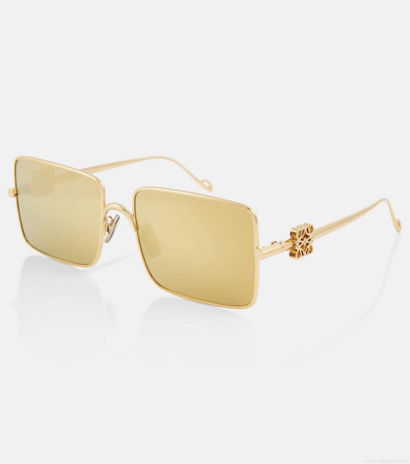 These sunglasses from Loewe feature a modern square silhouette and reflective gold-tinted lenses. The golden style is finished with tonal Anagram logo detailing at the temples.
