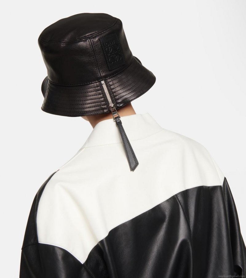 For an elevated take on ‘90s streetwear, look to LOEWE with this black bucket hat. Made in Spain from supple leather, this traditional silhouette has a quilted brim trimmed with a silver-tone zip. The house’s signature Anagram logo patch discreetly accents the back.