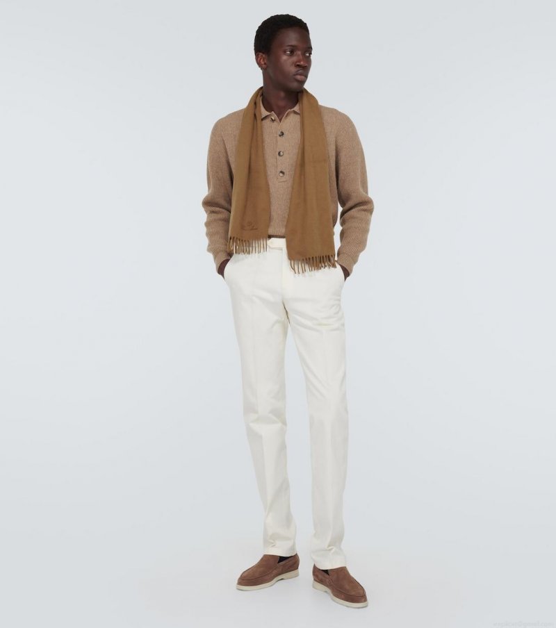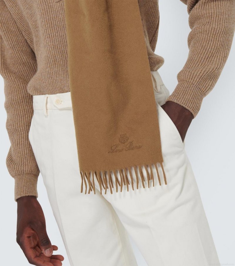 Every Loro Piana design combines the best of Italian craftsmanship with the finest raw materials. Made of brown cashmere, this scarf has a brushed texture with tonal tassel trim.