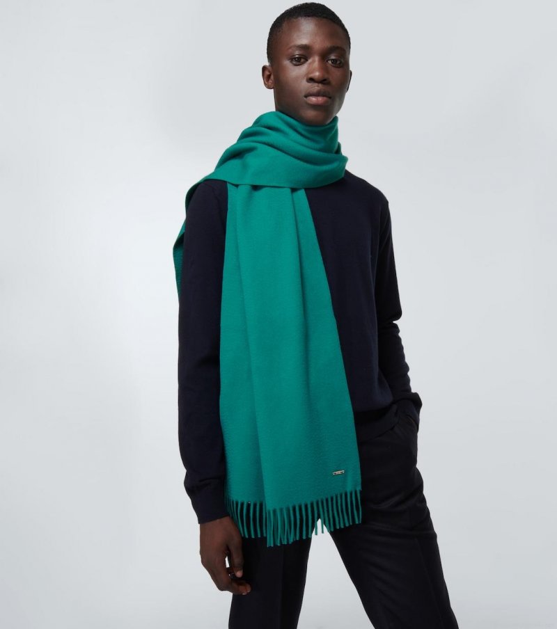 Crafted in Italy from 100% cashmere, this large petrol blue scarf from Loro Piana is finished with fringing at both ends.