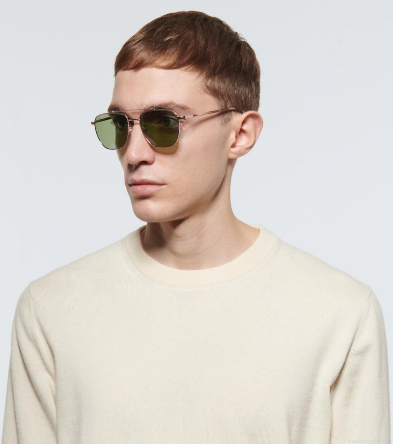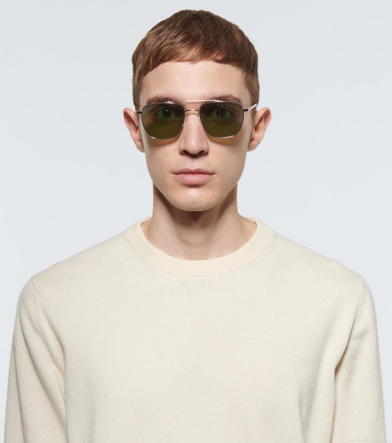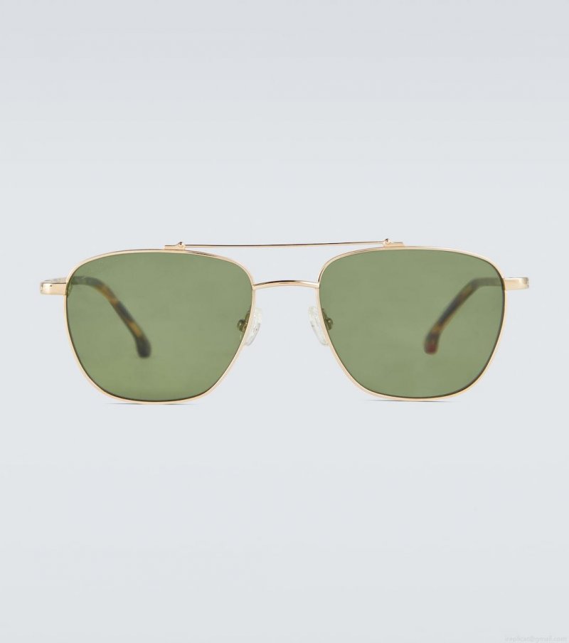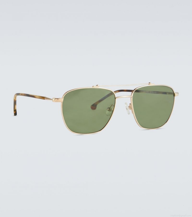Handmade in Japan, these aviator sunglasses from Loro Piana feature golden metal frames and acetate arms. They have green polarized lenses which are crafted from N.P.E.L.P, to ensure complete protection for the eyes. This style comes in a protective case, the color of which may vary.