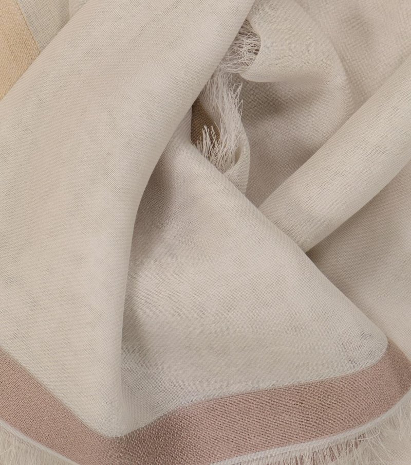 This lightweight Quadrata scarf from Loro Piana is made from woven beige cotton. It's trimmed with lustrous silk borders and finely frayed trims.