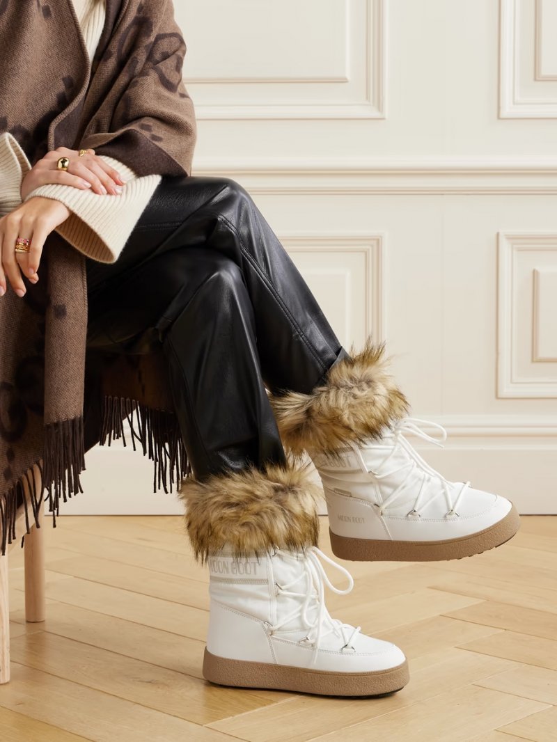 - White shell and faux leather, brown faux fur