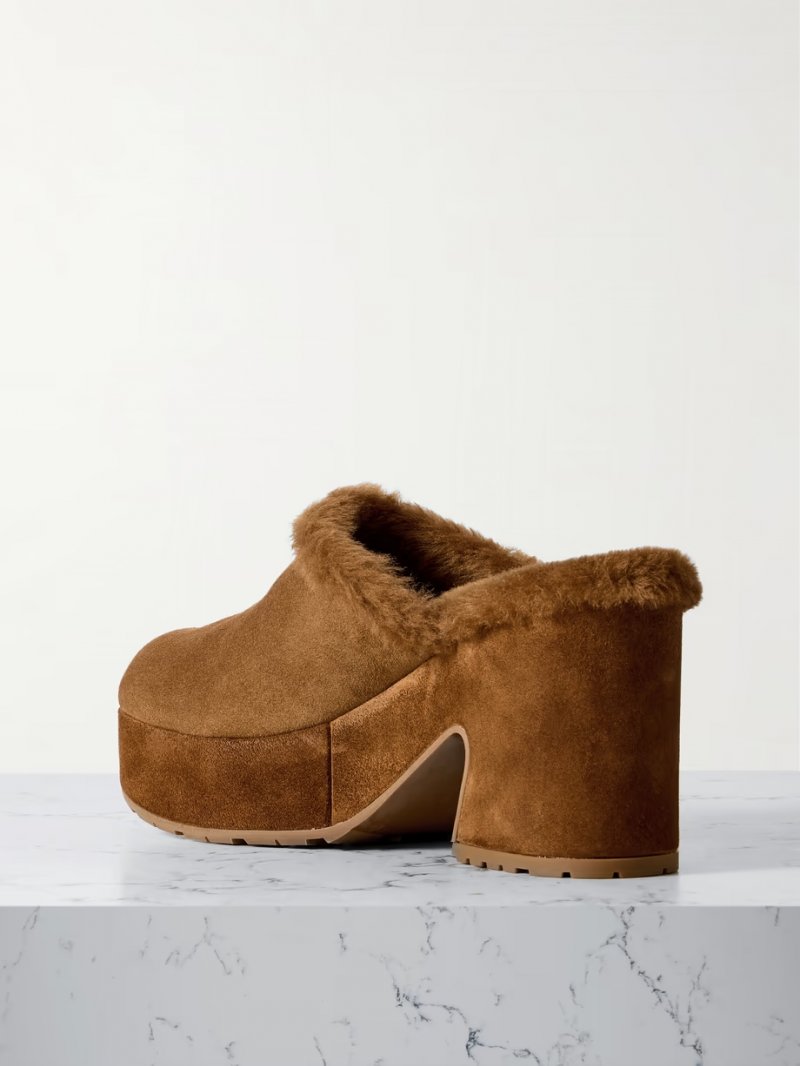 - Brown suede and shearling (Cow, Goat)