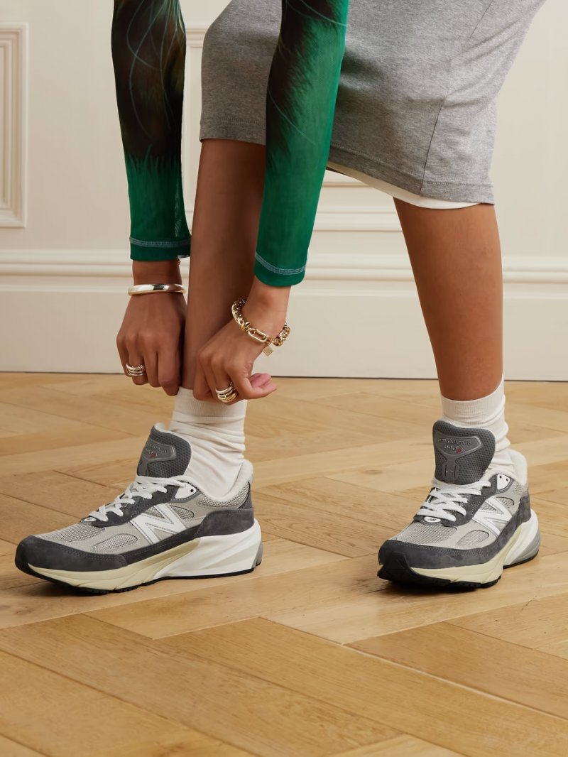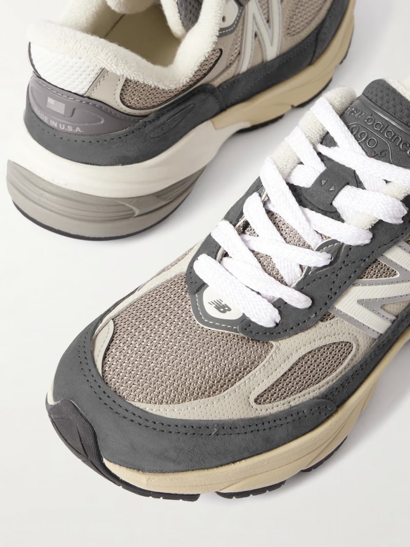 - Tonal-gray suede and mesh, tonal-gray and white leather