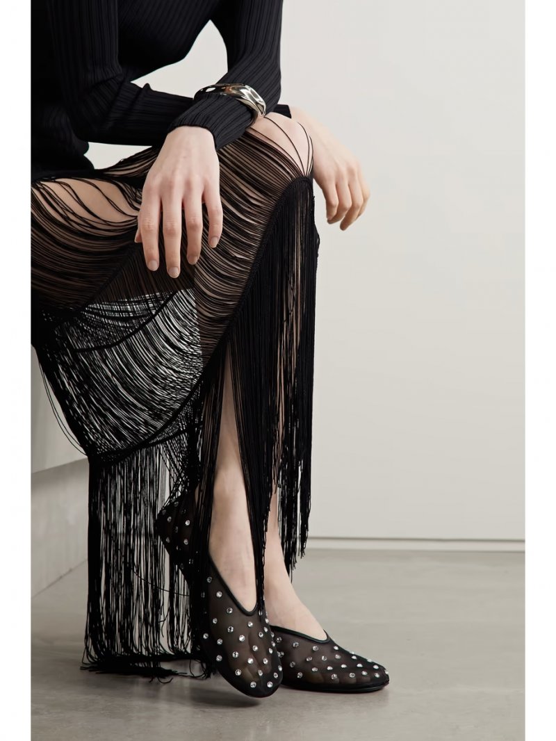 Carla leather-trimmed tweed Mary Jane ballet flats