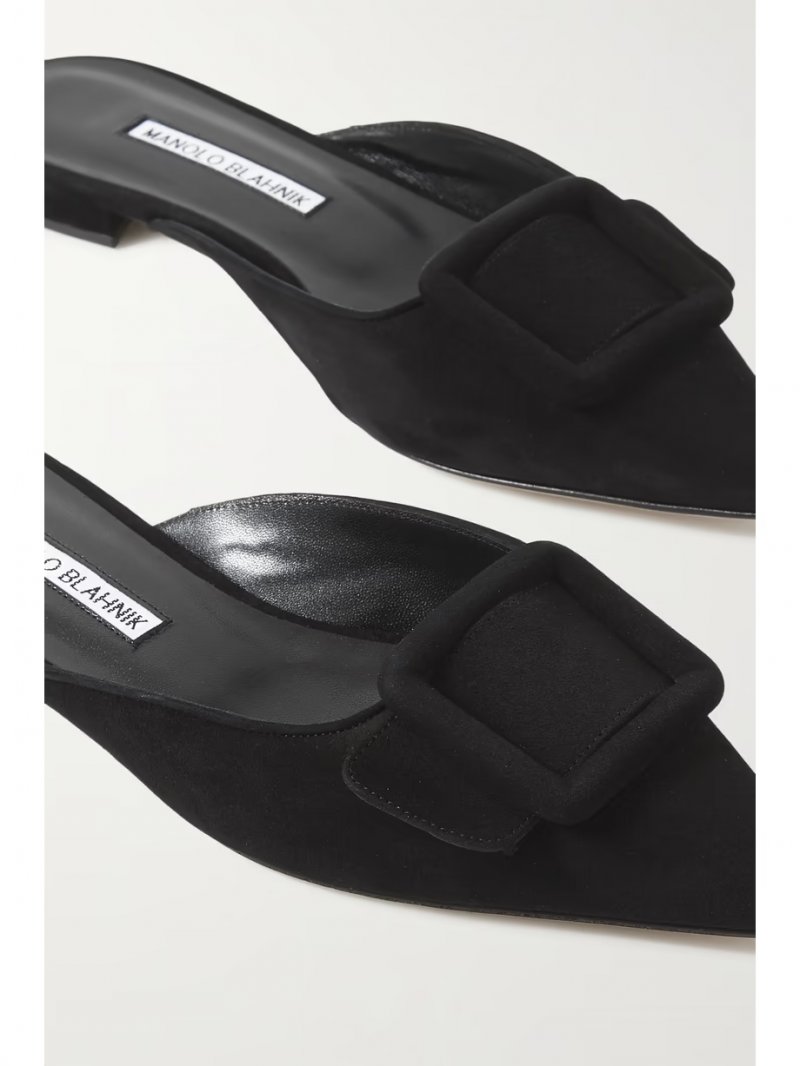 - Embellished suede slippers