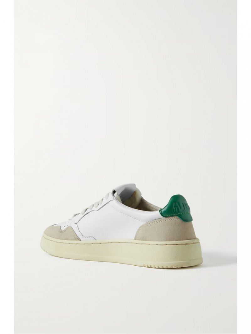 - Beige suede, white and green leather (Cow)