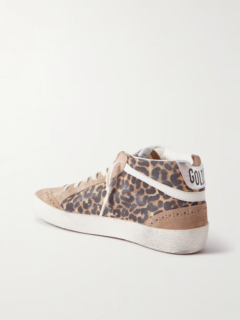 - Leopard-print and camel suede (Cow), black and off-white leather (Calf)