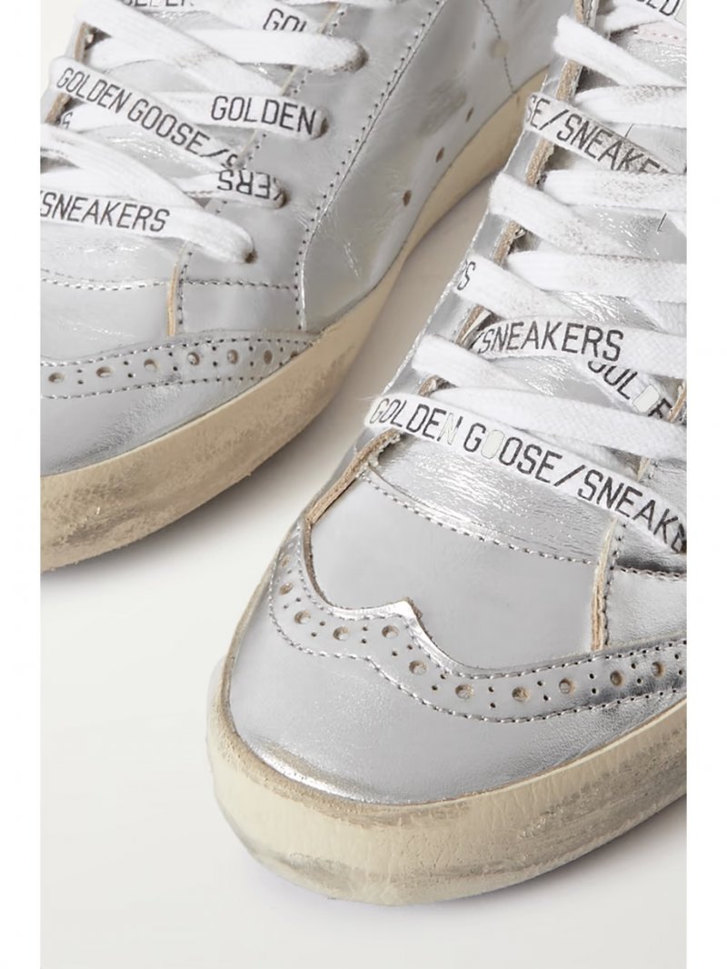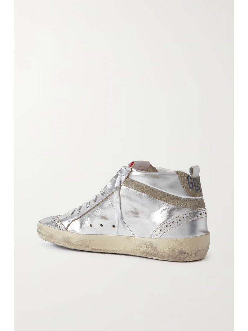 - Silver leather, taupe and navy suede (Calf)