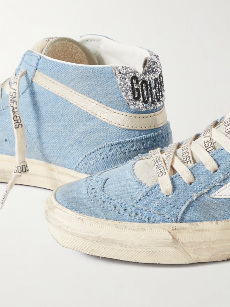 - Light-blue denim, silver leather (Calf), glittered leather (Calf)