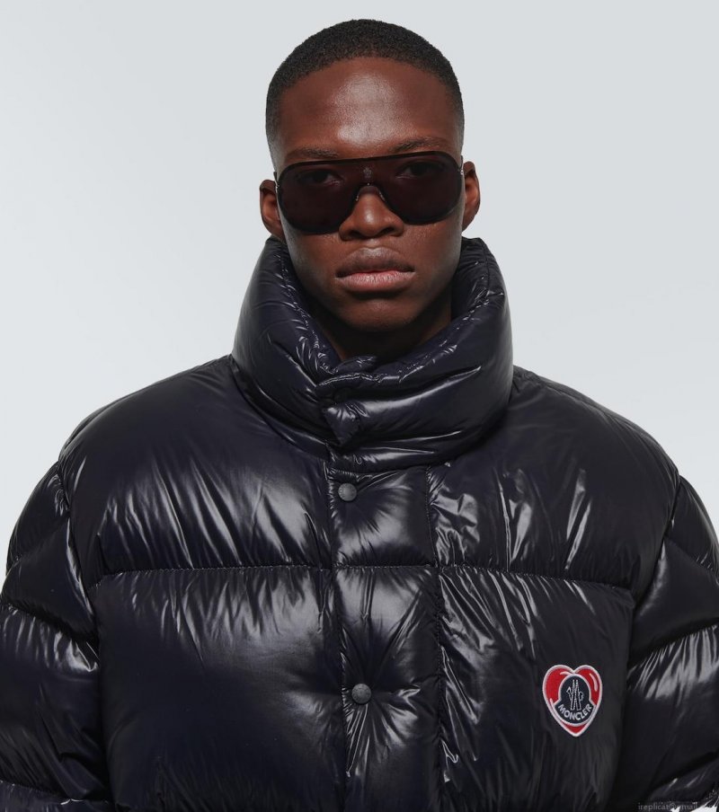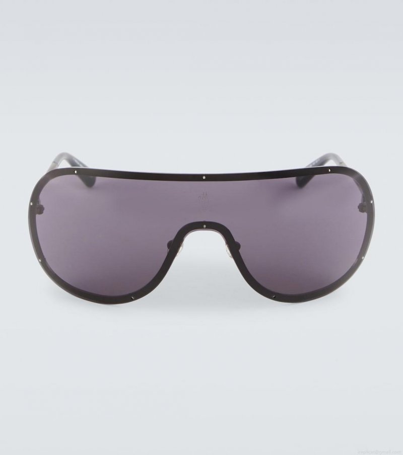 Avionn shield sunglasses from Moncler showcase a blend of futuristic and retro elements. The sleek smokey lenses feature a logo on the bridge, complemented by a slim metal frame for a minimalist look.