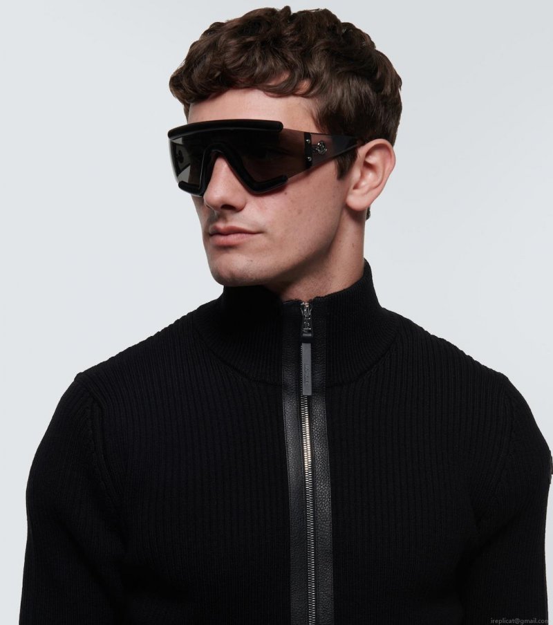 Add a striking touch to your accessories collection with the Lancer shield sunglasses from Moncler. This pair features thick glossy frames and is finished with logo detailing at the temples.