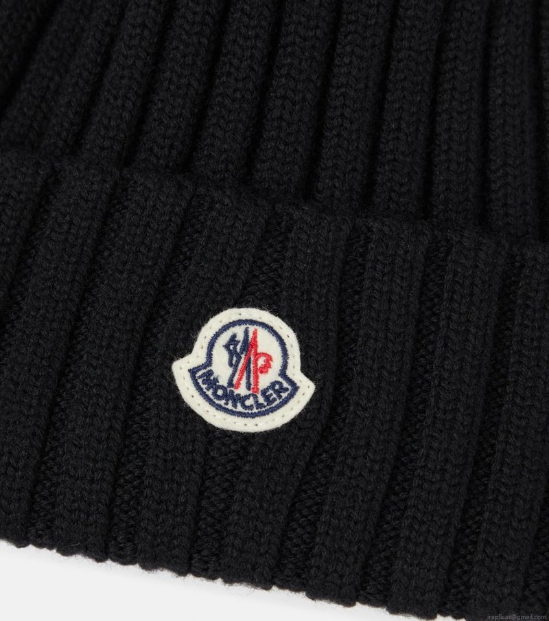 / MonclerLogo faux fur-trimmed wool beanie