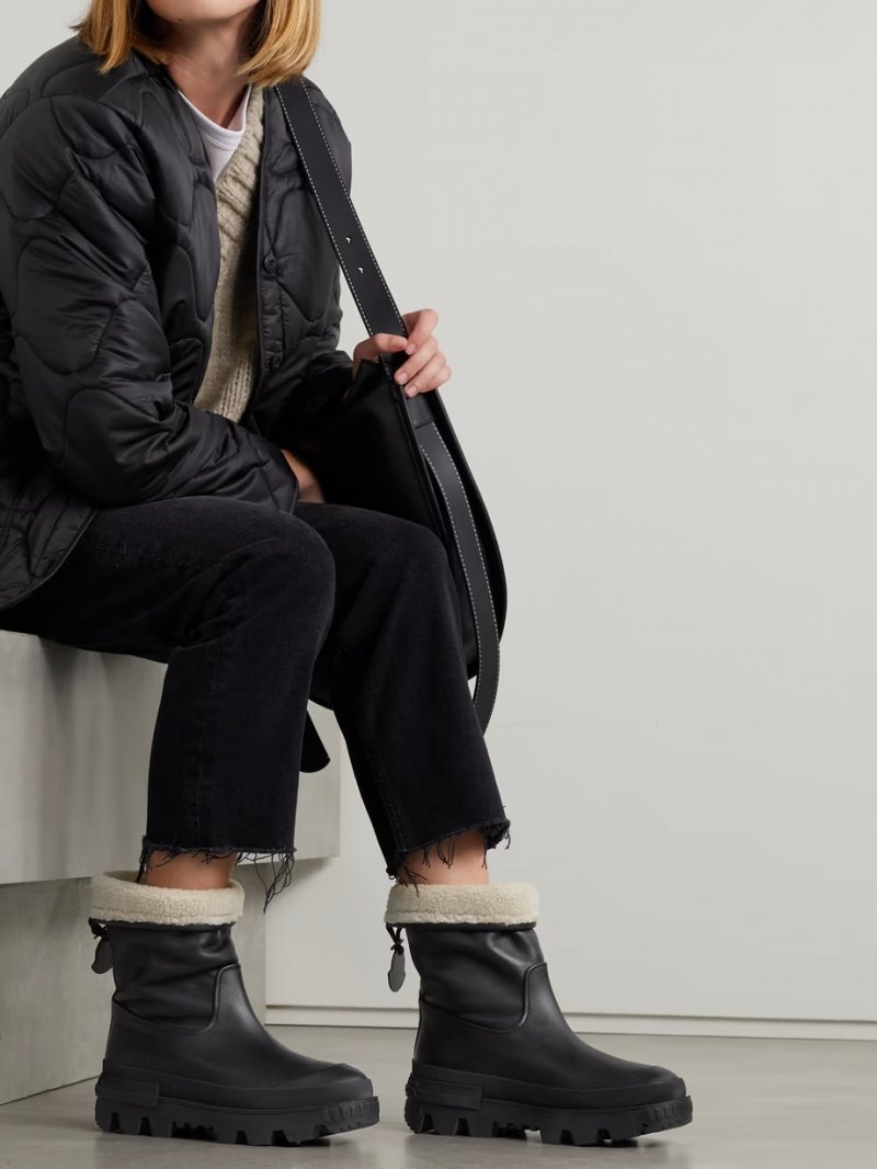- Black leather (Calf), cream faux fur