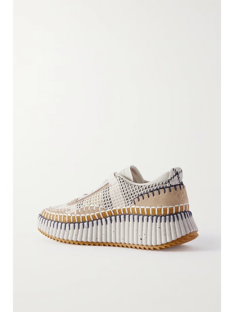 - Beige and white suede, multicolored recycled-mesh