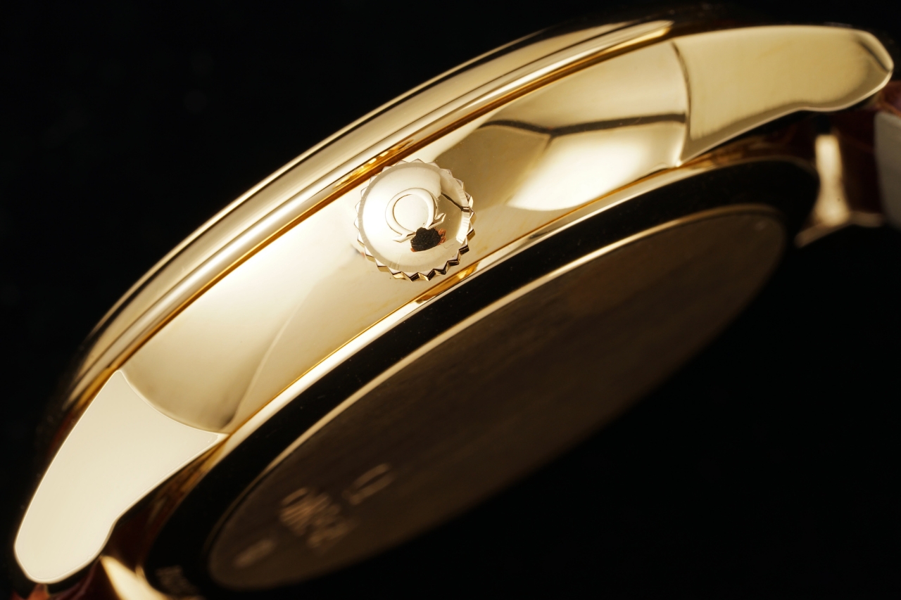 Strap: The strap is thick in the middle, flat on the sides, and meticulously stitched for a delicate and practical finish. It is paired with the classic Omega-style buckle