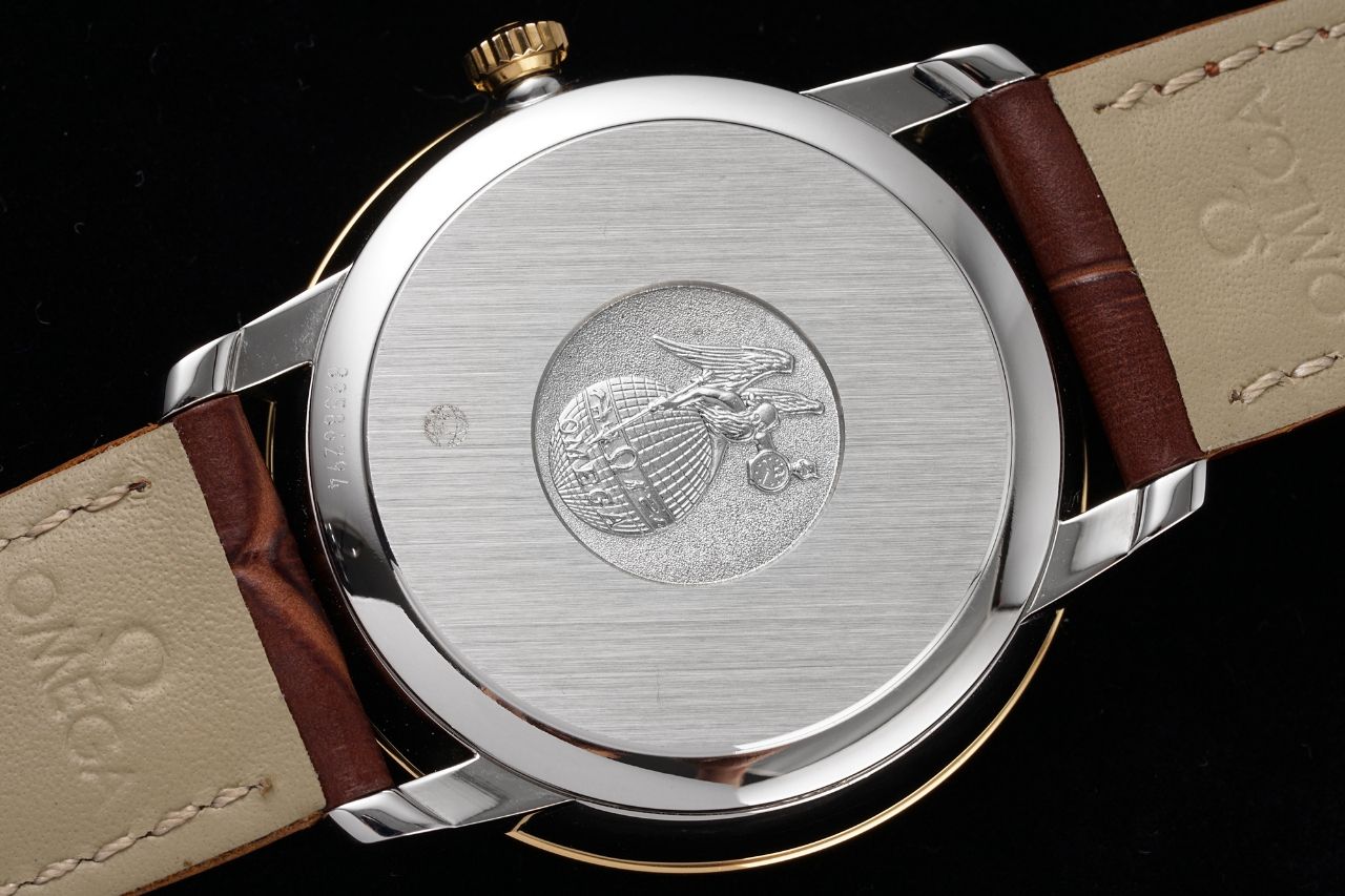 Strap: The strap is thick in the middle, flat on the sides, and meticulously stitched for a delicate and practical finish. It is paired with the classic Omega-style buckle