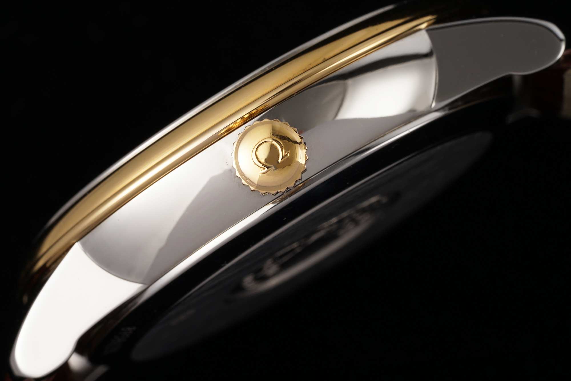 Strap: The strap is thick in the middle, flat on the sides, and meticulously stitched for a delicate and practical finish. It is paired with the classic Omega-style buckle
