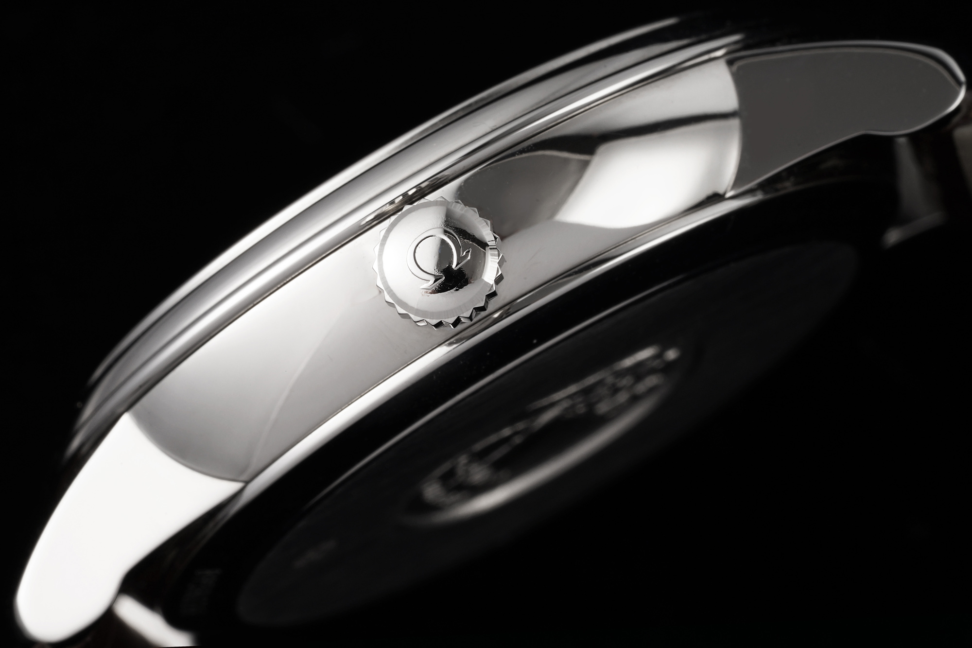 Strap: The strap is thick in the middle, flat on the sides, and meticulously stitched for a delicate and practical finish. It is paired with the classic Omega-style buckle