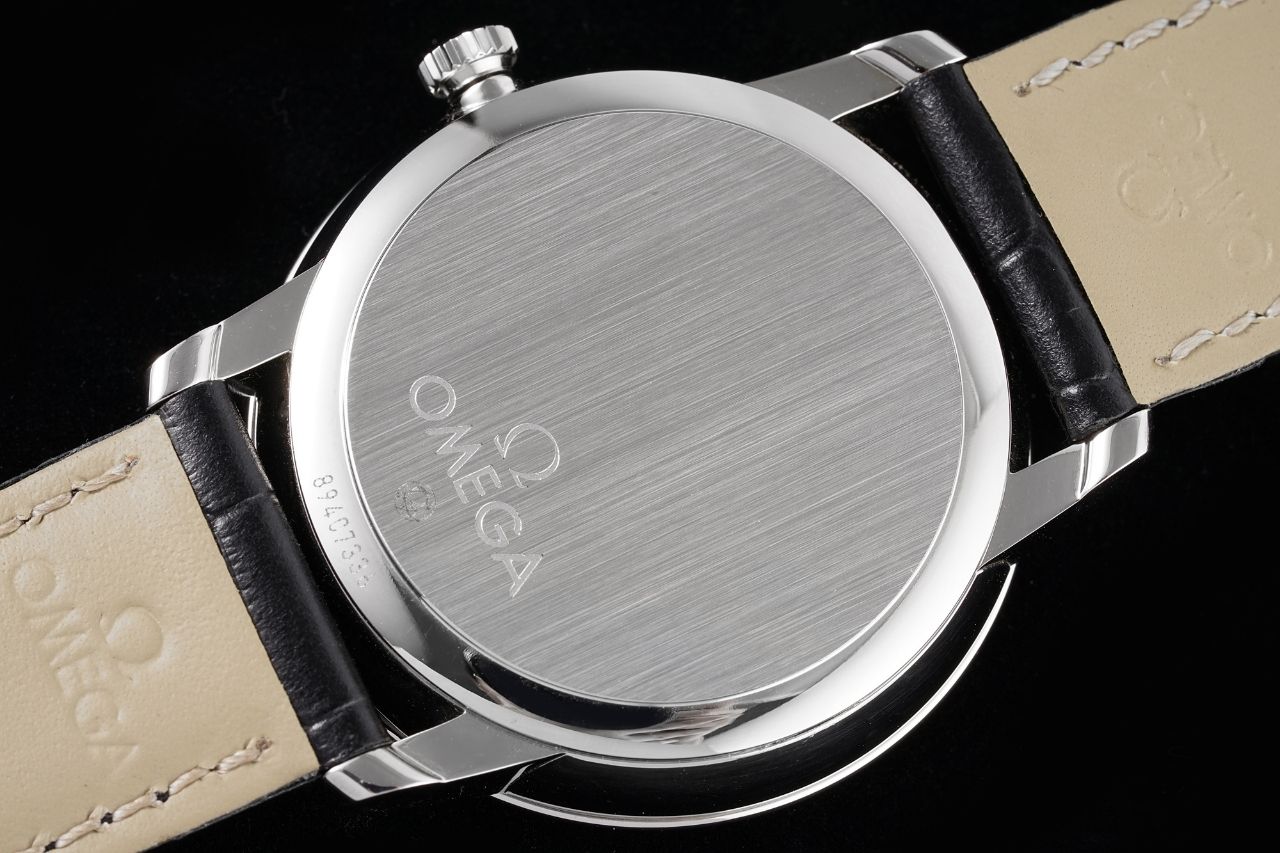 Strap: The strap is thick in the middle, flat on the sides, and meticulously stitched for a delicate and practical finish. It is paired with the classic Omega-style buckle
