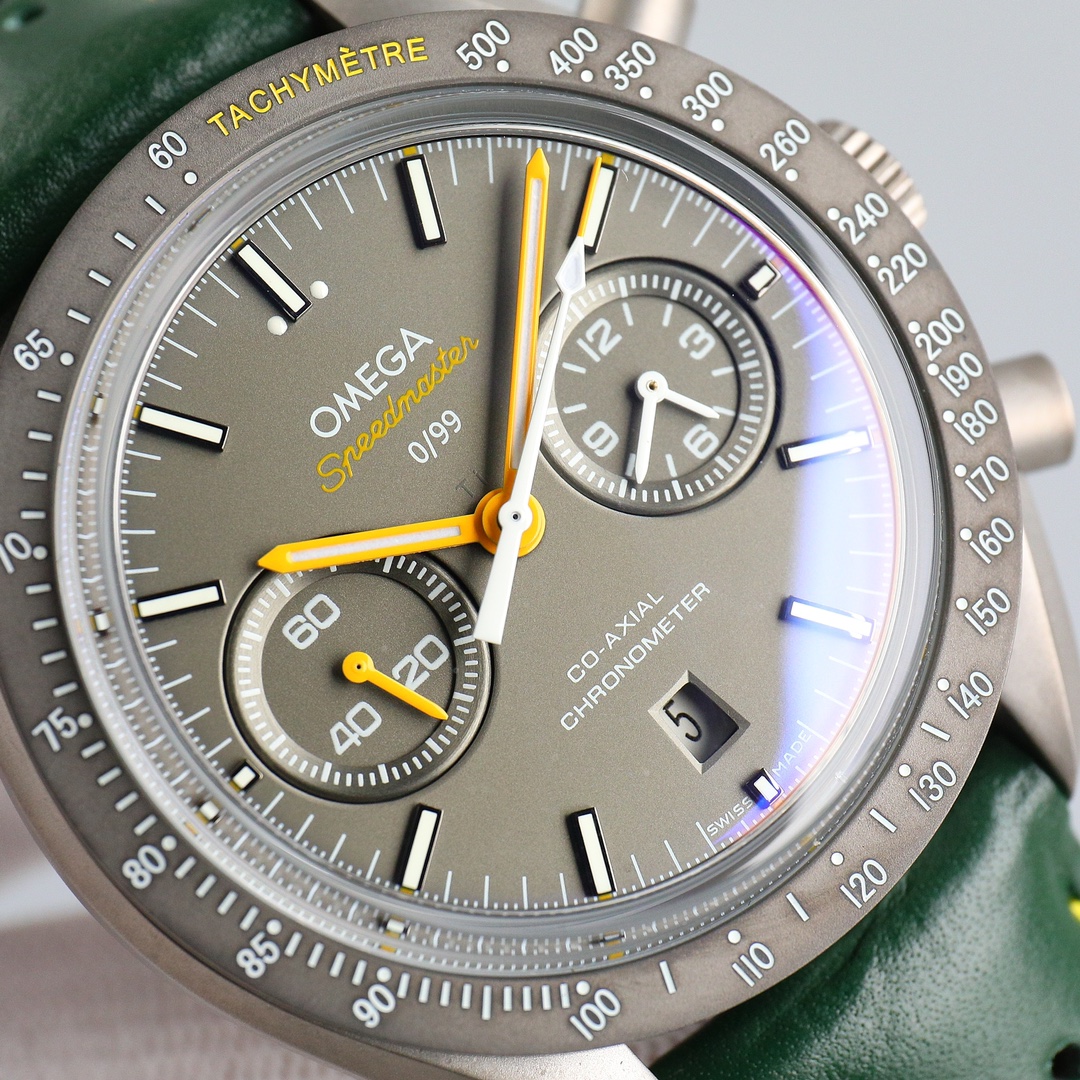 Movement: 9300 Co-Axial Chronograph movement with black oscillating weight automatic winding and rhodium-plated surface decorated with special Arabic-style Geneva waves