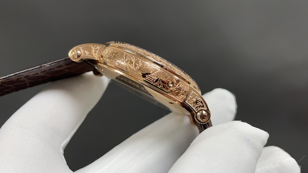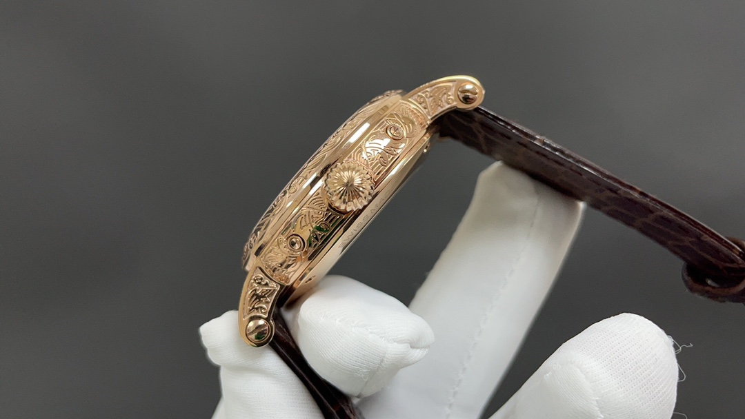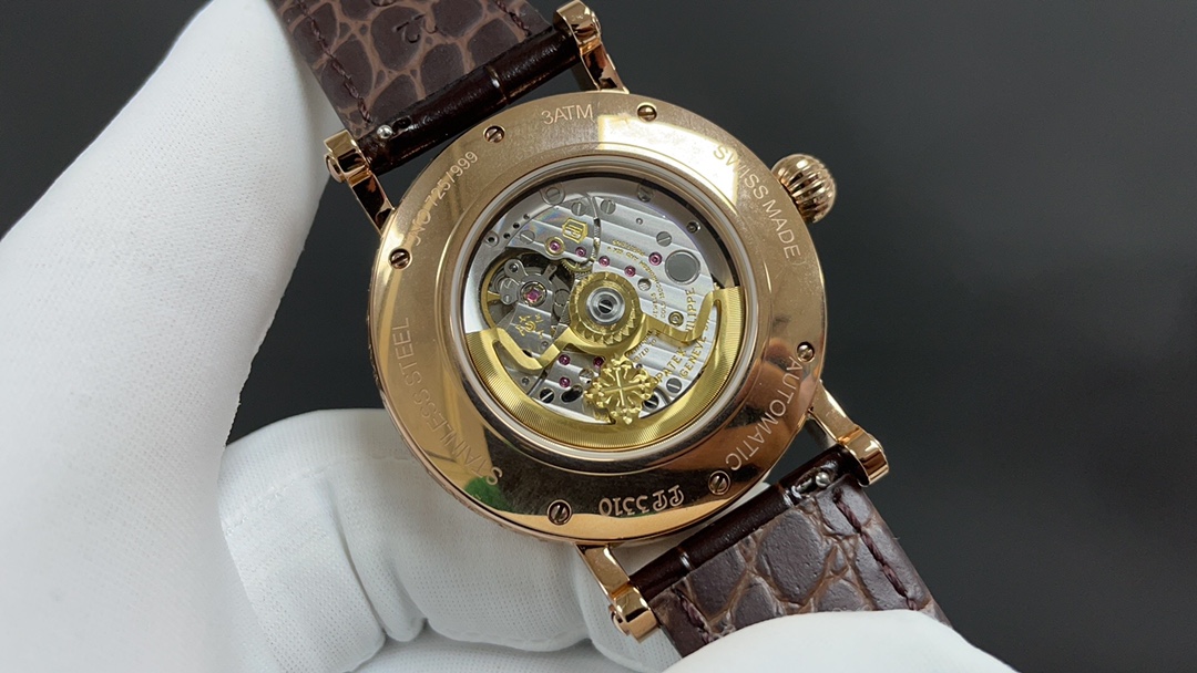 Movement: Equipped with a modified version of the Caliber 324 S Q self-winding movement, which is a refined version of the legendary Caliber 324 automatic movement. The movement features chamfered bridges with finely polished edges, a fish-scale pattern on the main bridge, Geneva waves on the rotor, and gold engraving on the bridge surfaces. The screw slots are also polished and chamfered, and even the holes are treated with the same level of craftsmanship.