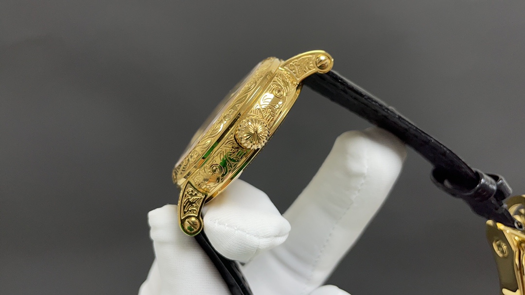 Movement: Equipped with a modified version of the Caliber 324 S Q self-winding movement, which is a refined version of the legendary Caliber 324 automatic movement. The movement features chamfered bridges with finely polished edges, a fish-scale pattern on the main bridge, Geneva waves on the rotor, and gold engraving on the bridge surfaces. The screw slots are also polished and chamfered, and even the holes are treated with the same level of craftsmanship.