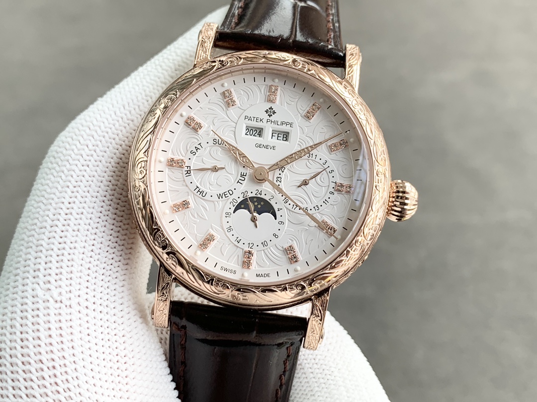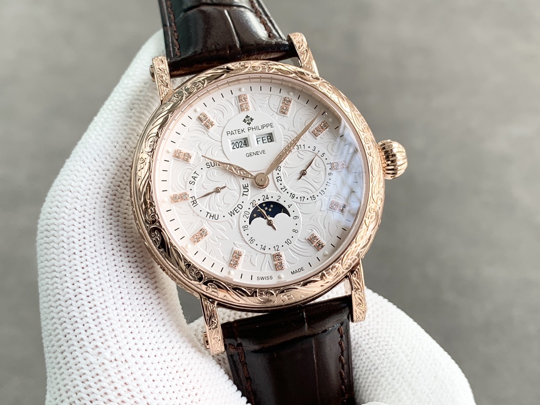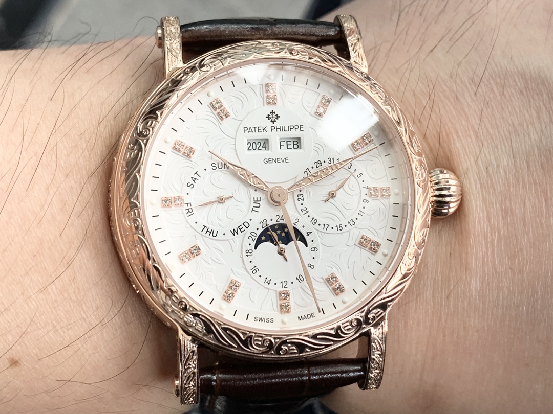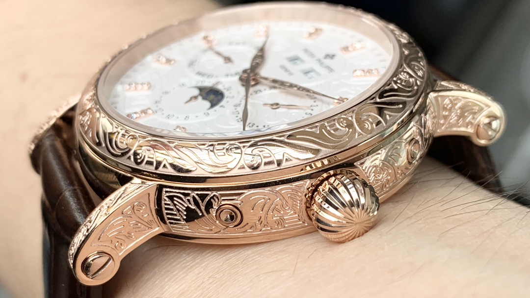 Strap: Classic Italian calfskin strap with clear texture and excellent quality. Paired with the top-level Patek Philippe lantern buckle, universally original and stress-free.